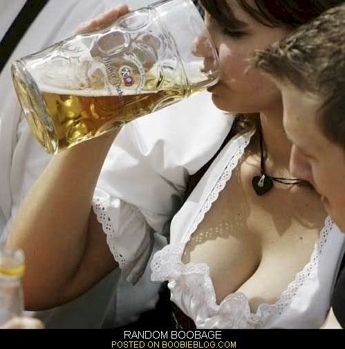 While the lady's powers with the beer stein is quite impressive, the funny bit is where the guy is gazing